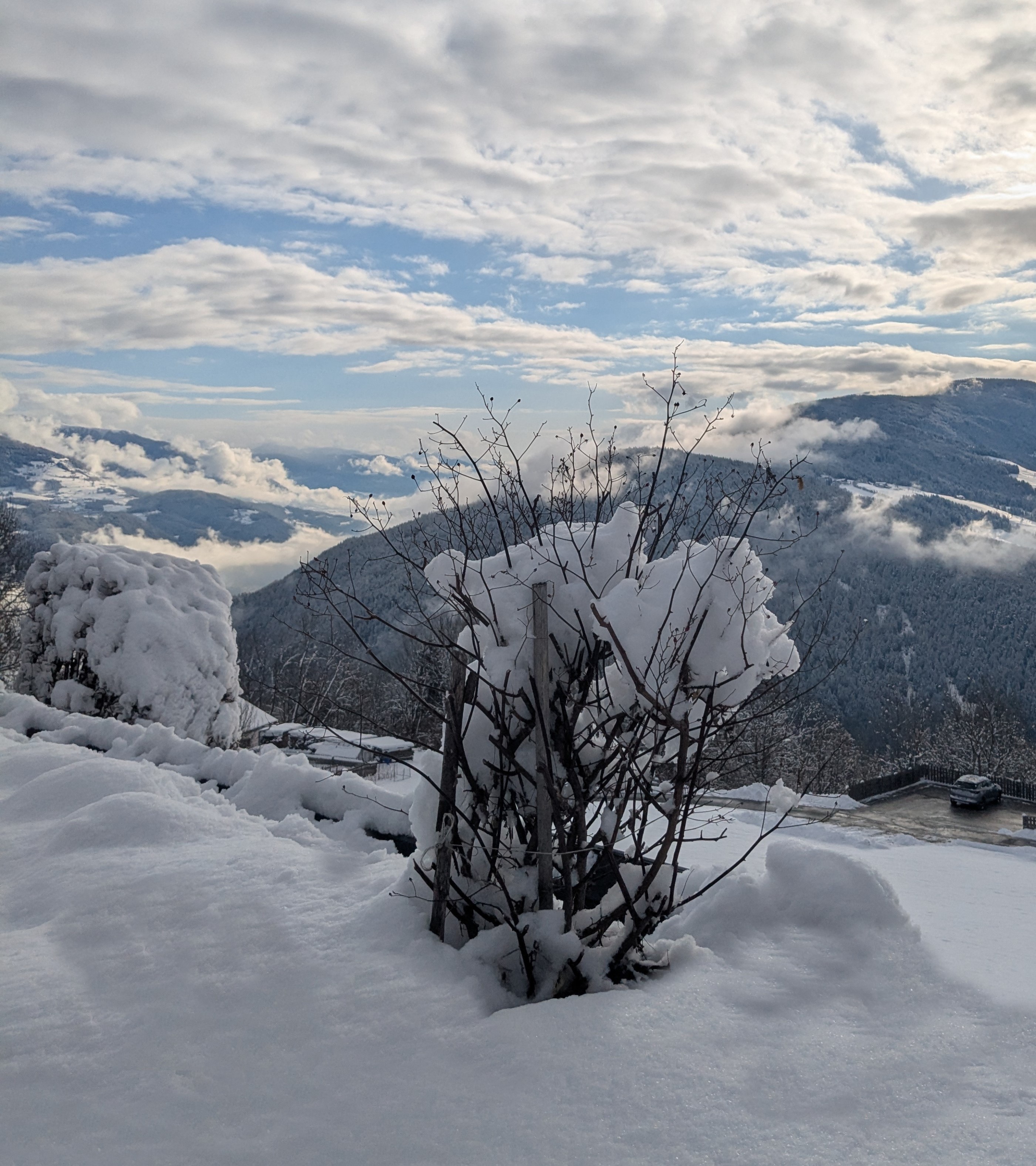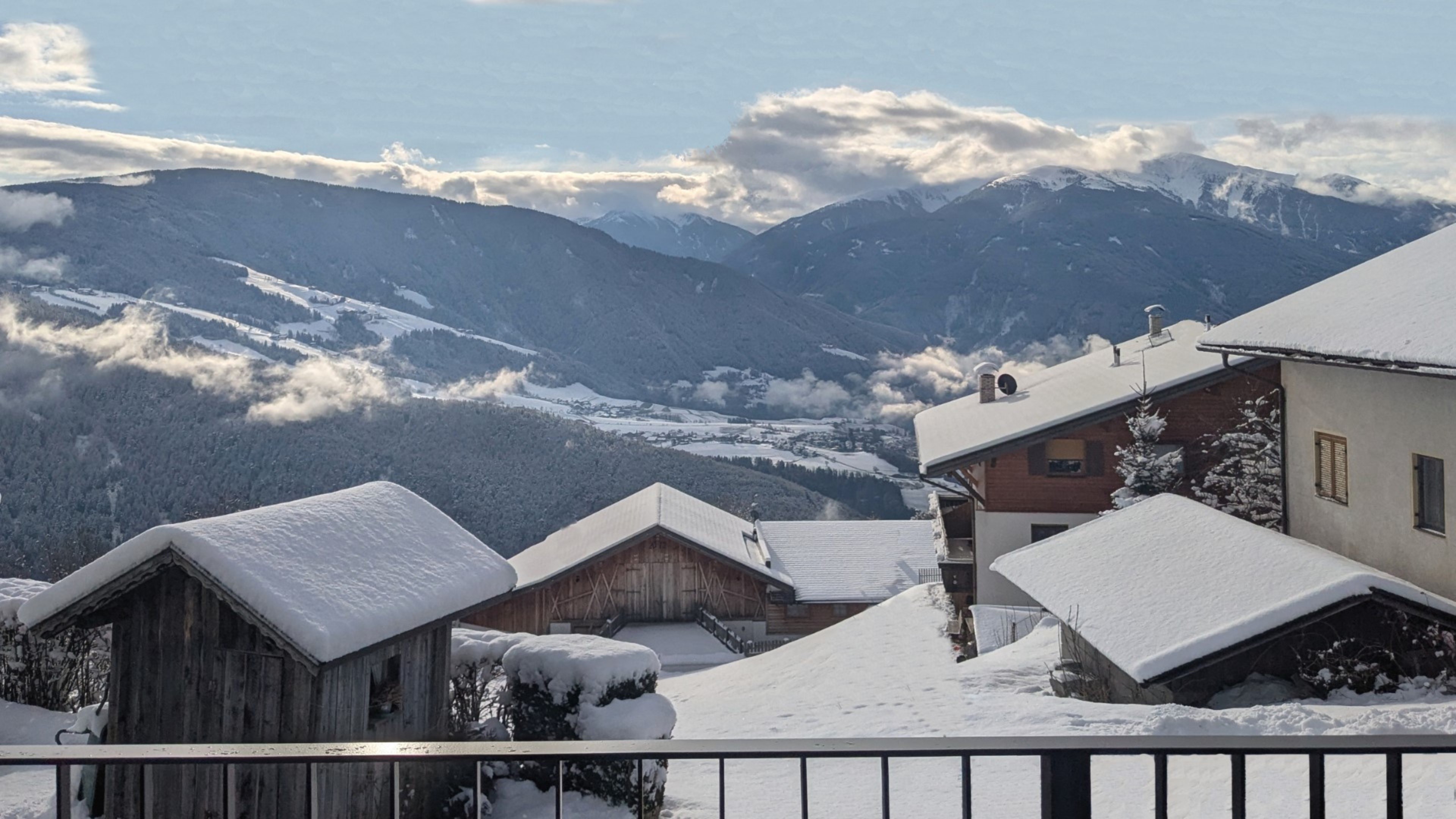 Das Appartementhaus Haselstaude liegt am Südhang von Meransen, 10 Gehminuten vom Ortskern entfernt.